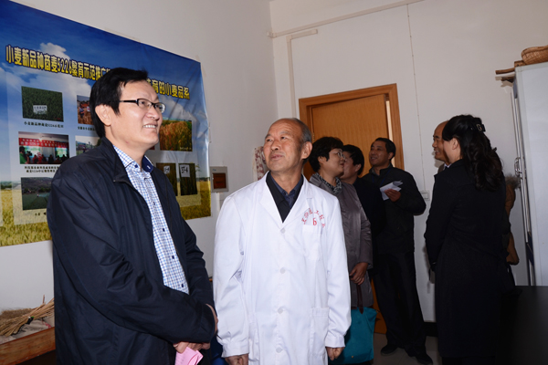 黃暉一行深入我校GAP科研工程中心參觀了中醫(yī)藥、植物學(xué)、小麥育種等重點實驗室,饒有趣味地觀摩了我校在服務(wù)地方資源開發(fā)利用、中醫(yī)藥研究方面的成果。黃暉一行介紹了國家在中醫(yī)藥領(lǐng)域的發(fā)展狀況、研究前沿,鼓勵我校在食品藥品、中藥材領(lǐng)域做好基礎(chǔ)研究的同時向?qū)W科前沿邁進,研究出實用價值更高的成果。