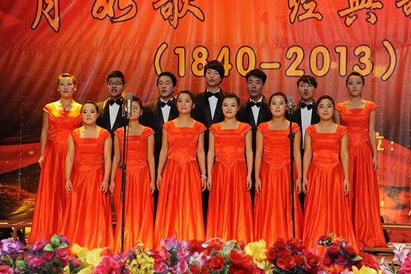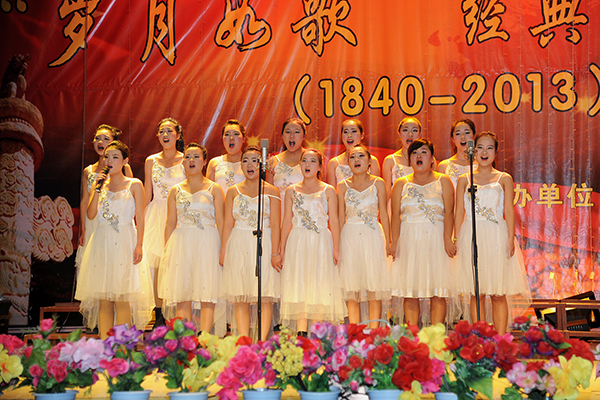 演唱會以“傳播正能量、唱響中國夢”為主題,分為“雄關(guān)漫道真如鐵”、“人間正道是滄?!焙汀伴L風(fēng)破浪會有時”三個篇章。一曲《送別·長亭外》拉開了演唱會的序幕。該曲節(jié)奏時而舒緩,時而高亢,旋律婉轉(zhuǎn)悠揚,處處表達(dá)著對友人的深情厚誼、戀戀難舍的情感。接下來,同學(xué)們深情演唱了《月兒彎彎照九洲》《八月桂花遍地開》《映山紅》《十送紅軍》《過雪山草地》等多首經(jīng)典歌曲。一曲《山丹丹花開紅艷艷》將演唱會推向高潮,現(xiàn)場掌聲雷動,《歌唱祖國》以激情澎湃的氣勢向我們傳遞著中華兒女對祖國的濃情厚意;《東方之珠》《七子之歌—澳門》仿佛緩緩訴說著祖國日益強大。最后,在一曲充滿濃情的《讓世界充滿愛》歌聲中,演唱會圓滿結(jié)束。