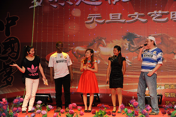 當(dāng)晚的大學(xué)生活動(dòng)中心喜氣洋洋,洋溢著一派歡樂祥和的節(jié)日氣氛。晚會(huì)在歡快喜慶的民樂合奏《迎賓曲》《開門紅》中拉開了帷幕,18個(gè)節(jié)目涵蓋歌曲、舞蹈、相聲、器樂演奏、詩朗誦、情景劇、傳統(tǒng)戲曲等多種表演形式,內(nèi)容豐富、異彩紛呈。其中,苗族舞蹈《紅苗傘》詼諧輕快,生動(dòng)活潑,展示了苗家趣味橫生的生活場景;獨(dú)具地方特色的歌曲《圪梁梁》豪邁粗獷,剛勁奔放;歌舞劇《together》講述了一個(gè)中國女孩在巴西旅游遇見四位外國友人后發(fā)生的的趣事,展示了我校外籍教師的風(fēng)采;被同學(xué)們冠以“樓姨”昵稱的宿舍管理員們也登臺(tái)表演了《中國福字舞》,向全校師生展現(xiàn)了積極向上的生活態(tài)度;由我校女教職工合唱隊(duì)帶來的小合唱《草原迎賓曲》《回娘家》以其婉轉(zhuǎn)動(dòng)人的旋律、優(yōu)美深情的歌聲讓人深深陶醉;蒙古舞《草原天堂》展現(xiàn)了草原人民對(duì)美好生活的追求與向往。晚會(huì)在歌伴舞《中國夢》的旋律中圓滿落幕。