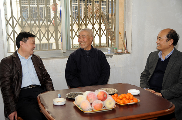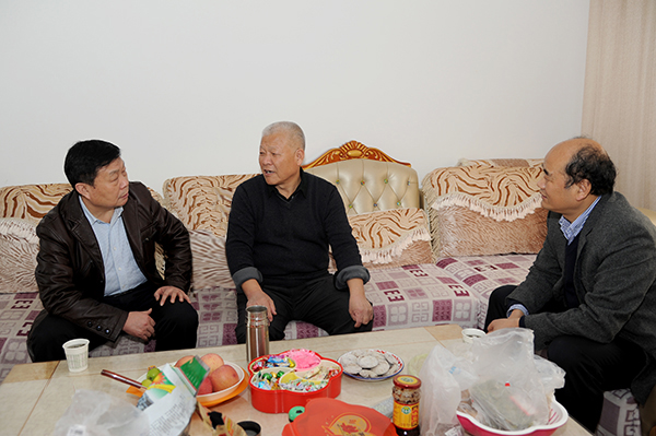 在學院辦公室負責人的陪同下,張景書、劉建林一行先后前往楊含榮、劉文斌家中,和他們促膝交談,關(guān)切地詢問老同志的健康狀況和家庭、生活情況,叮囑他們保養(yǎng)好身體,為他們送上慰問金和學校師生的祝福和問候,并向老同志們介紹了學校一年來的發(fā)展建設成就。張景書、劉建林說,過去的一年里,學校各項工作取得了長足進步,這既是全體師生員工共同努力的結(jié)果,也離不開老同志們打下的堅實基礎(chǔ),離不開老同志們的關(guān)心和支持。希望老同志們在保重身體的同時,一如既往地關(guān)注支持學院發(fā)展,積極建言獻策,?;貙W校看看,為學校建設發(fā)展多提寶貴意見。