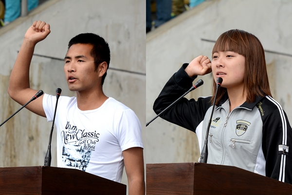 運動員代表劉曉瑩、裁判員代表洪福祥,分別代表全體運動員、裁判員宣誓。