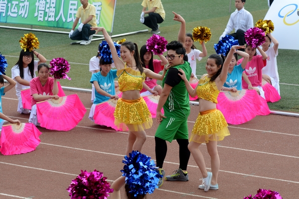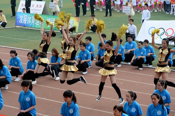開幕式上,城鄉(xiāng)規(guī)劃與建筑工程學(xué)院的300名同學(xué)以飽滿的熱情表演了大型團(tuán)體操《舞動青春,放飛夢想》,拉開了本次大型文體表演的序幕;人文社會科學(xué)學(xué)院的太極拳表演《太極神韻》剛?cè)嵯酀?jì),典雅大方;經(jīng)濟(jì)與管理學(xué)院240名青春學(xué)子帶來的啦啦操《青春旋風(fēng)》熱情奔放,活力十足,為整場表演畫上了圓滿的句號。