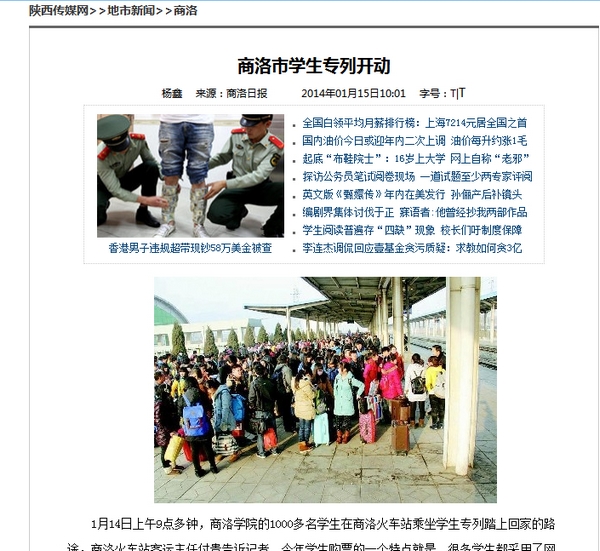陜西傳媒網(wǎng)《商洛市學(xué)生專列開動》一文,報道了寒假前期我校積極聯(lián)系商洛火車站調(diào)配車輛,開通學(xué)生專列,方便學(xué)生乘車回家。(http://www.sxdaily.com.cn/n/2014/0115/c55-5332744.html)