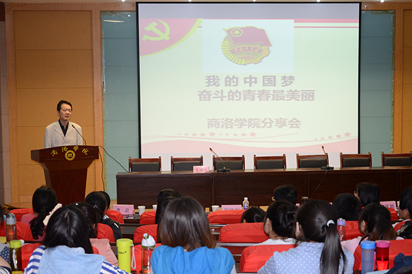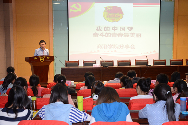 5月7日,陜西省“我的中國(guó)夢(mèng)--奮斗的青春最美麗”分享團(tuán)走進(jìn)我校,與我校師生分享他們青春追夢(mèng)的奮斗歷程與成長(zhǎng)心得。共青團(tuán)陜西省委副書記單舒平出席了活動(dòng),并在校黨委副書記左曉民的陪同下參觀了我校校園。共青團(tuán)商洛市委書記曹艷萍,團(tuán)省委宣傳部干部李夏穎,校團(tuán)委副書記彭曉邦,我校200余名青年學(xué)生代表參加了分享會(huì)。分享會(huì)由校宣傳部部長(zhǎng)郭英勇主持。