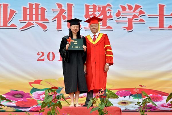 伴隨著校歌《正道直行做棟梁》激昂的旋律,畢業(yè)典禮圓滿結(jié)束。在學(xué)士學(xué)位授予儀式上,校長、校學(xué)士學(xué)位評(píng)定委員會(huì)主席劉建林宣讀了《商洛學(xué)院關(guān)于授予翟嘉梁等1902名畢業(yè)生學(xué)士學(xué)位的決定》。校領(lǐng)導(dǎo)劉建林、左曉民、王思懷、魏書堂分別為獲得學(xué)士學(xué)位的畢業(yè)生正冠撥蘇、頒發(fā)學(xué)位證書,并同他們一一合影留念。