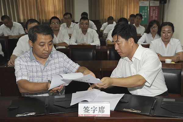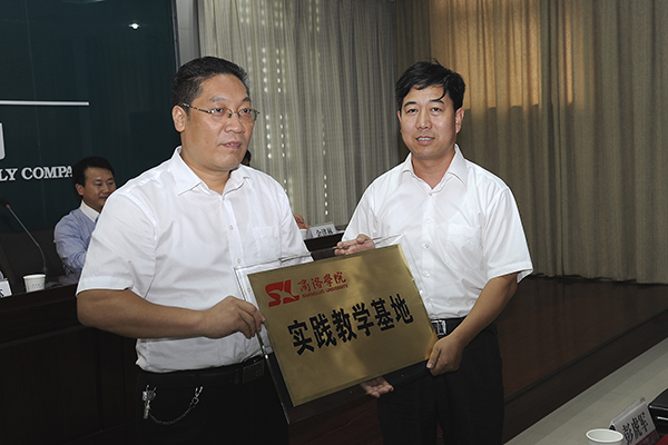 發(fā)展規(guī)劃與合作交流處處長王新軍與丹鳳電力局局長郭瑞鋒代表雙方分別在“校外實踐教學基地建設”協(xié)議書上簽字。教務處處長李超向丹鳳電力局授牌。