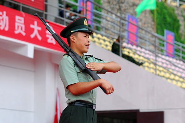 今年新生軍訓(xùn)增加的“操槍訓(xùn)練”項目,當(dāng)屬本次軍訓(xùn)最大的亮點。西安政治學(xué)院政治部主任徐自軍大校在接受采訪時介紹,今年操槍訓(xùn)練使用的是56式半自動步槍,主要練習(xí)舉槍禮儀、托槍、操槍和刺殺操等動作。每個營輪流進行感受,盡量保證每位同學(xué)都能有一次“荷槍實彈”的體驗。軍訓(xùn)團還挑選出98名新生組成操槍方隊,在軍訓(xùn)匯演時向全校師生展示他們的訓(xùn)練成果。