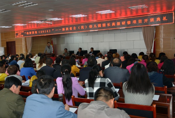 10月12日 ,我校舉行“幼師國(guó)培(2014)”——陜西省公(民)辦幼兒園園長(zhǎng)高級(jí)研修項(xiàng)目開班典禮。校紀(jì)委書記、“國(guó)培計(jì)劃”培訓(xùn)項(xiàng)目領(lǐng)導(dǎo)小組組長(zhǎng)王思懷教授,副校長(zhǎng)、“幼師國(guó)培”項(xiàng)目首席專家魏書堂教授,商洛市教育局相關(guān)負(fù)責(zé)人出席開班典禮。該項(xiàng)目是“國(guó)培計(jì)劃”啟動(dòng)以來陜西省教育廳首次設(shè)置的對(duì)幼兒園園長(zhǎng)進(jìn)行的培訓(xùn)項(xiàng)目,我校也是該項(xiàng)目的首批承辦單位之一。