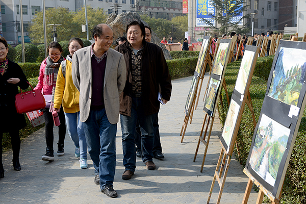 在洛南寫生活動(dòng)期間,師生參觀了“墨韻華陽寫生展”,與諸多畫家交流學(xué)習(xí),通過觀摩,開闊眼界,吸取營養(yǎng)。