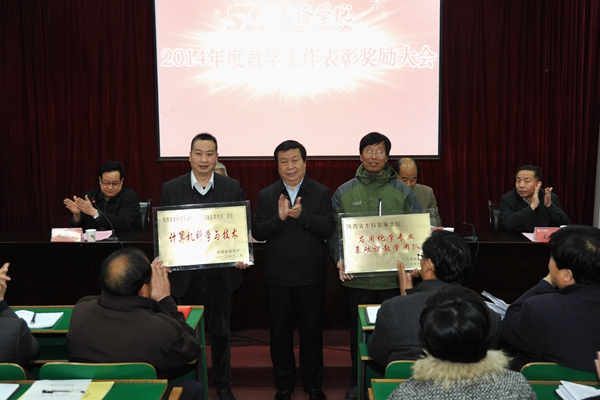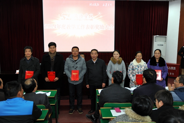 12月25日下午,我校隆重召開2014年度教學(xué)工作表彰獎(jiǎng)勵(lì)大會(huì),對(duì)本年度教學(xué)工作表現(xiàn)突出的集體和個(gè)人予以表彰獎(jiǎng)勵(lì),為省級(jí)本科教學(xué)工程項(xiàng)目授牌。校領(lǐng)導(dǎo)張景書、劉建林、左曉民、王思懷出席會(huì)議。大會(huì)由副校長魏書堂主持。各院(部)、各系、各實(shí)驗(yàn)中心負(fù)責(zé)人,教學(xué)秘書及青年教師,學(xué)校辦公室、干部人事處、宣傳部、校團(tuán)委、學(xué)生處、招生就業(yè)處,形勢(shì)政策教研室、職業(yè)生涯規(guī)劃與就業(yè)指導(dǎo)教研室、心理健康教研室、國防與安全教育教研室負(fù)責(zé)人參加了表彰大會(huì)。