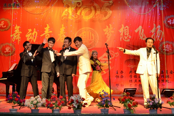 馬蹄留勝跡,羊毫譜新歌。12月30日晚,我校2015年度元旦文藝晚會(huì)在大學(xué)生活動(dòng)中心隆重舉行。商洛市副市長劉榮賢,校黨委書記張景書、校長劉建林、黨委副書記左曉民、紀(jì)委書記王思懷、副校長魏書堂,商洛市教育局局長胡棟梁、共青團(tuán)商洛市委書記曹艷萍、商州區(qū)政府副區(qū)長楊俊芬,商洛供電局、中國銀行商洛分行、中國建設(shè)銀行商洛分行、中國郵政商洛分公司、中國移動(dòng)商洛分公司、中國聯(lián)通商洛分公司、中國電信商洛分公司、商洛市劇團(tuán)、中國移動(dòng)商州分公司有關(guān)領(lǐng)導(dǎo)同師生們一起觀看了演出。