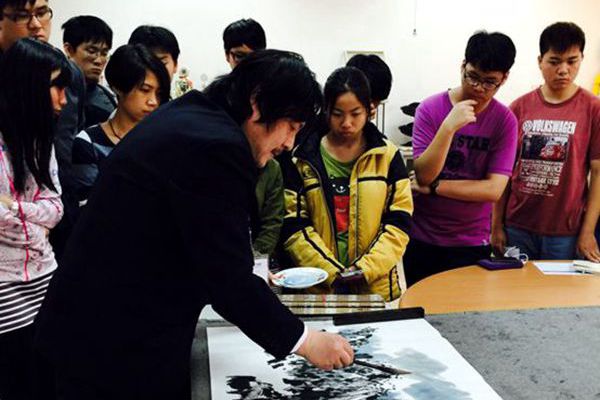 應東方設計學院邀請,劉鳳林在美術工藝系舉行了書畫教學示范和專業(yè)學術交流活動,現(xiàn)場作畫《秦嶺秋意》《三陽開泰》《達摩面壁》。東方設計學院師生紛紛觀摩學習,領略了中國傳統(tǒng)書畫的藝術精髓和秦嶺畫派獨特的藝術魅力。
