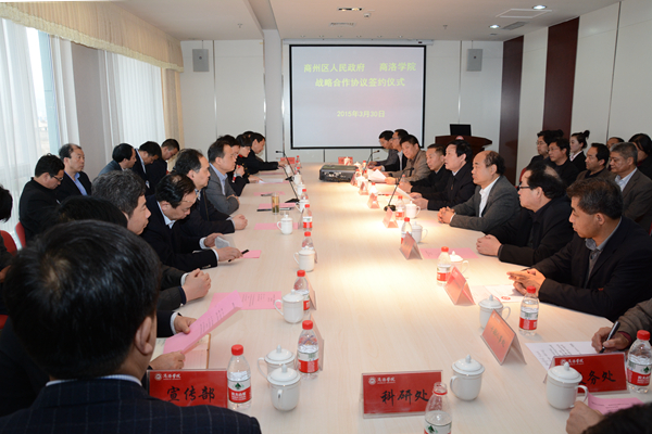 校黨委書記張景書在講話中指出,商州區(qū)政府和地方父老鄉(xiāng)親多年來的一貫支持,是我校各項(xiàng)事業(yè)不斷發(fā)展的重要條件。這次校地戰(zhàn)略合作協(xié)議的簽署,是我校積極貫徹落實(shí)習(xí)近平總書記來陜視察重要講話精神,堅(jiān)持開放辦學(xué),深化產(chǎn)學(xué)研合作,推進(jìn)學(xué)校內(nèi)涵發(fā)展的一項(xiàng)具體行動(dòng),也標(biāo)志著雙方的合作邁上了一個(gè)新臺(tái)階。通過校地戰(zhàn)略合作,商州區(qū)人民政府將為我校在文化建設(shè)、科學(xué)研究、人才培養(yǎng)和教學(xué)改革等方面提供有力支持;我校也將進(jìn)一步對(duì)接商州區(qū)社會(huì)經(jīng)濟(jì)發(fā)展需要,充分發(fā)揮人才、智力和技術(shù)優(yōu)勢(shì),為商州區(qū)、商洛市經(jīng)濟(jì)社會(huì)又好又快發(fā)展提供大力支持。張景書強(qiáng)調(diào),適應(yīng)經(jīng)濟(jì)社會(huì)發(fā)展的新常態(tài),加快經(jīng)濟(jì)轉(zhuǎn)型、產(chǎn)業(yè)升級(jí),是地方政府的責(zé)任,也是商洛學(xué)院義不容辭的社會(huì)職責(zé)。誠(chéng)摯希望商州區(qū)人民政府和我校友好攜手,不斷總結(jié)合作經(jīng)驗(yàn),全方位提升合作層次和水平,全面落實(shí)協(xié)議內(nèi)容,早日取得豐碩成果。