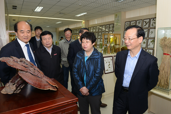 在學(xué)校發(fā)展成果展廳,孟軍深情地回憶起他1978至1980年間在我校學(xué)習(xí)的美好時(shí)光,對(duì)學(xué)校今日翻天覆地的變化給予了充分肯定。在秦嶺植物標(biāo)本陳列室,孟軍和劉榮賢興致勃勃地參觀了“五大商藥”等標(biāo)本,了解了我校生物醫(yī)藥與食品工程學(xué)院、中藥材GAP科研工程中心、秦嶺植物良種繁育中心培育及合作研制的小麥新品種和各類特色產(chǎn)品。
