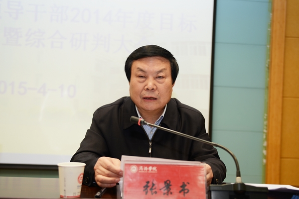 張景書代表我校黨政領導班子作了2014年度工作述職報告。張景書從黨的建設、體制創(chuàng)新與轉型發(fā)展、辦學質量、學生工作、校園建設與民生工程建設、管理工作、領導班子自身建設等七個方面對我校2014年工作作了全面總結。他說,2014年是學校深化改革、完善體制機制、轉型發(fā)展的重要一年,學校在陜西省委、省政府,省委高教工委、省教育廳的正確領導下,在商洛市委、市政府的關心支持下,學校黨政領導班子團結帶領全校師生員工,較好完成了年初確定的發(fā)展目標,改革發(fā)展事業(yè)取得了顯著成績。他指出,2015年是我校發(fā)展歷程中極為關鍵、重要的一年,我們既要接受教育部合格評估,又要進行丹江校區(qū)建設和新一輪基礎設施建設,探索轉型發(fā)展路徑,深化應用型人才培養(yǎng)模式改革,學校領導班子要以更大的氣魄、膽識和擔當,團結帶領師生員工全身心投入到學校改革發(fā)展事業(yè)中去,全面完成2015年工作任務。