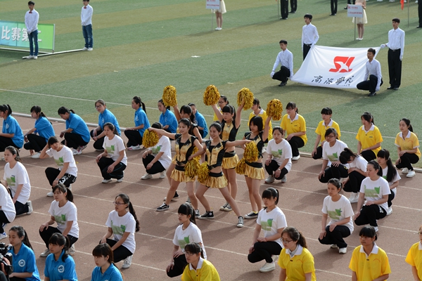 在歡快的運動會進行曲中,各院和教職工代表等方隊精神飽滿,依次入場。他們昂首闊步,精神抖擻,整齊的陣容,嘹亮的口號,颯爽的英姿,展示了當代師生意氣風發(fā)、朝氣蓬勃的青春風采,博得了全場的陣陣掌聲。語言文化傳播學院擺出了漢字“文”的隊形,生物醫(yī)藥與食品工程學院用雙手組成“海鷗”圖形,城鄉(xiāng)規(guī)劃與建筑工程學院用五彩扇子組成“JGXY(建工學院)”、笑臉、“Go”三個圖案,其他各院也紛紛以多種多樣的形式展示了昂揚的精神風貌。