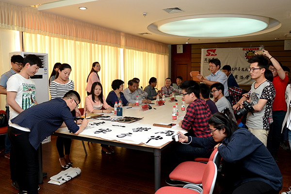 我校書畫協(xié)會還向南開科技大學兩岸文化交流研習團師生贈送了現(xiàn)場創(chuàng)作的“兩岸學子一家親”“富貴牡丹”等書畫作品,以作紀念。
