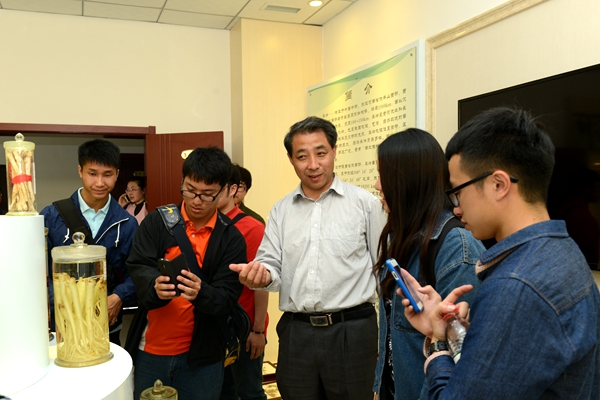 在生物醫(yī)藥與食品工程學院師生代表的陪同下,臺灣師生饒有興致地參觀了秦嶺植物標本陳列室,現(xiàn)場品嘗了生物醫(yī)藥與食品工程學院自釀的山茱萸葡萄酒,稱有家鄉(xiāng)桑葚果汁的味道。他們對秦嶺豐富的生物資源尤其是中藥資源興趣濃厚,紛紛拍照留念。