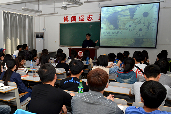 臺灣南開科技大學學子盧瑞林在經(jīng)濟與管理學院《文化學教程》課上介紹臺灣文化
