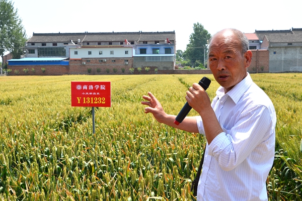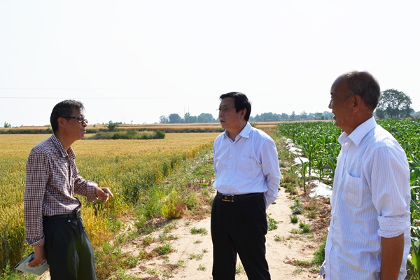 在咸陽市涇陽縣興隆鎮(zhèn),張景書深入商麥“5226”示范田,與商麥種植示范戶親切交談,觀摩了商麥的抗旱性、長勢、落黃及籽粒飽滿情況,了解了商麥“5226”在今年多雨季節(jié)的抗病情況、產(chǎn)量及推廣面積。涇陽縣現(xiàn)代種業(yè)公司經(jīng)理藏喜詳細(xì)介紹了商麥“5226”在渭北旱塬、甘肅隴南的實(shí)驗(yàn)情況,并表示“商麥5226”有望成為渭北旱塬地區(qū)小麥主栽品種。