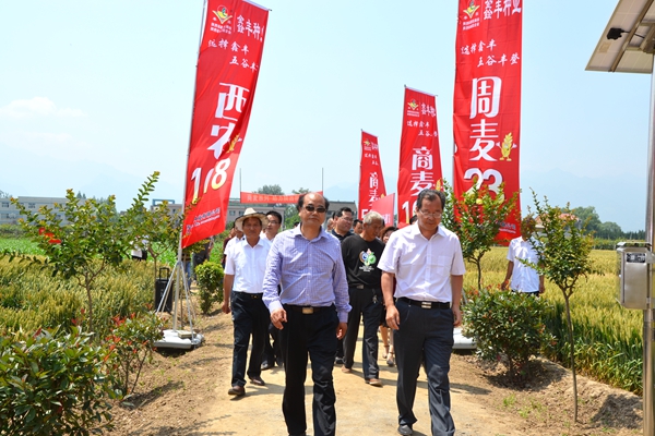 5月27日,校黨委書記張景書、校長劉建林一行前往咸陽市涇陽縣和西安市周至縣調(diào)研我校培育的商麥“5226”、“1619”品種和商麥“1032”新品系。學(xué)校辦公室、科研處、生物醫(yī)藥與食品工程學(xué)院及良種繁育中心相關(guān)負(fù)責(zé)人參加調(diào)研。