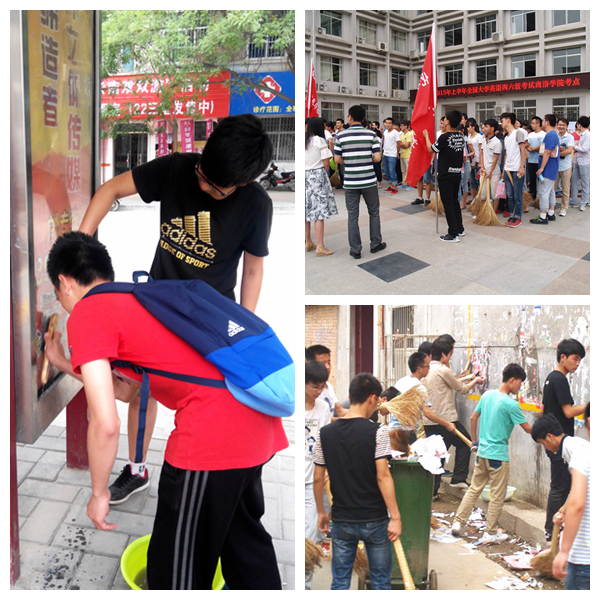 根據(jù)商洛市創(chuàng)建省級(jí)衛(wèi)生城市復(fù)審工作要求和統(tǒng)一安排,6月12日以來(lái),我校組織化材學(xué)院、電信學(xué)院165名學(xué)生走上街頭,參加市容衛(wèi)生大掃除活動(dòng)。在校領(lǐng)導(dǎo)親自指揮調(diào)度下,后勤保障處、學(xué)生處、保衛(wèi)處和相關(guān)二級(jí)學(xué)院密切配合,對(duì)市區(qū)復(fù)審辦分配我校的創(chuàng)衛(wèi)任務(wù)進(jìn)行了具體分解和安排落實(shí)。