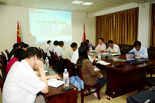 6月24日下午,我校召開(kāi)2015屆畢業(yè)生工作會(huì),安排部暑2015屆畢業(yè)生后期各項(xiàng)工作。校黨委副書(shū)記彭虎軍要求,全校要高度重視,扎實(shí)、認(rèn)真、細(xì)致做好本屆畢業(yè)生后期工作,確保每一位畢業(yè)生都安全、順利離校。各二級(jí)學(xué)院黨總支及相關(guān)職能部門(mén)負(fù)責(zé)人參加了會(huì)議。