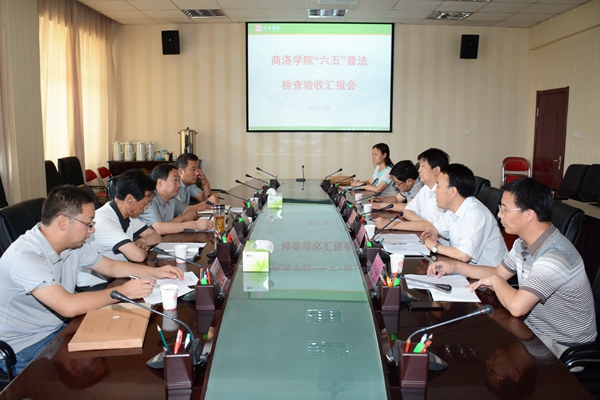 7月14日,由商洛市檢察院副檢察長(zhǎng)王農(nóng)業(yè)、市依法治市辦公室副主任王治才一行四人組成的來(lái)我校檢查驗(yàn)收“六五”普法工作。校黨委副書(shū)記、“六五”普法工作領(lǐng)導(dǎo)小組副組長(zhǎng)彭虎軍,學(xué)校辦公室、黨委宣傳部、思想政治理論課教學(xué)研究部負(fù)責(zé)人參加檢查驗(yàn)收匯報(bào)會(huì)。