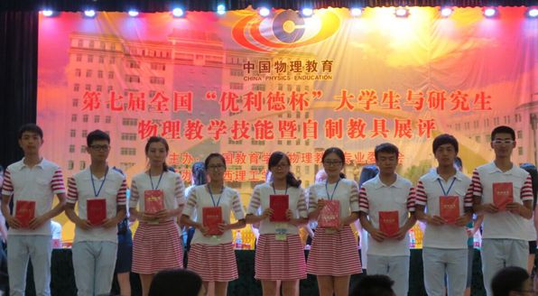 2015年7月29日至31日,由中國教育學會物理教學專業(yè)委員會主辦的第七屆全國“優(yōu)利德杯”大學生與研究生物理教學技能暨自制教具展評活動在陜西理工學院舉行。來自北京師范大學、山東師范大學、華東師范大學、福建師范大學、西南大學等112所高校的1000余名師生參加了本次活動。我校選派電子信息與電氣工程學院9組學生團隊參加展評并獲得了一等獎三項、二等獎兩項和三等獎四項的好成績, 李英、李書婷、王寶珍、劉俊被評為優(yōu)秀指導教師。