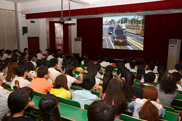 9月3日,中國人民抗日戰(zhàn)爭暨世界反法西斯戰(zhàn)爭勝利70周年紀(jì)念大會在北京隆重舉行。校領(lǐng)導(dǎo)與師生們一同觀看紀(jì)念活動實(shí)況,見證這一舉世矚目的歷史時(shí)刻,共同祝愿偉大祖國繁榮昌盛。