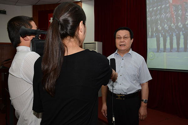 張景書在觀看實(shí)況轉(zhuǎn)播后指出,這次中國人民抗日戰(zhàn)爭暨世界反法西斯戰(zhàn)爭勝利70周年紀(jì)念大會和盛大閱兵式,讓我校師生深受鼓舞,深感自豪,也深受教育。閱兵式充分展示了我們的軍威國威和偉大祖國的強(qiáng)盛。我們要認(rèn)真學(xué)習(xí)、貫徹、落實(shí)習(xí)近平總書記重要講話精神,在師生中弘揚(yáng)偉大的抗戰(zhàn)精神,弘揚(yáng)偉大的愛國主義精神,銘記歷史、緬懷先烈、珍愛和平、開創(chuàng)未來,加強(qiáng)對大學(xué)生的愛國主義教育和民族精神教育,為國家培養(yǎng)更多的合格人才,為實(shí)現(xiàn)“兩個(gè)一百年”的奮斗目標(biāo),為實(shí)現(xiàn)中華民族偉大復(fù)興的“中國夢”而不懈努力。