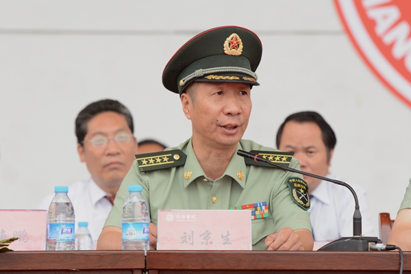 解放軍西安政治學(xué)院軍事系教授、學(xué)生軍訓(xùn)團團長劉京生大校講話