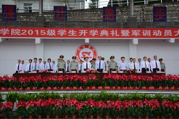 在校歌《正道直行做棟梁》激昂的歌聲中,大會宣告結(jié)束。2015級全體新生在教官的指導(dǎo)下開始了為期兩周的大學(xué)軍訓(xùn)生活。