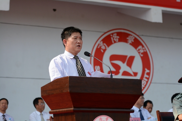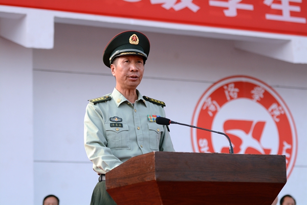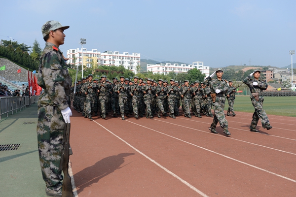 校黨委副書記彭虎軍代表學(xué)校向大力支持、幫助我校軍訓(xùn)工作的解放軍西安政治學(xué)院、西安理工大學(xué)致謝,向承擔(dān)軍訓(xùn)任務(wù)的全體教官致敬,向參加軍訓(xùn)并取得良好成績的軍訓(xùn)團(tuán)體官兵表示親切的慰問和熱烈地祝賀。他在講話中指出,2015級全體同學(xué)以昂揚(yáng)的斗志、刻苦的精神進(jìn)行了隊(duì)列隊(duì)形訓(xùn)練、整理內(nèi)務(wù)訓(xùn)練、操槍訓(xùn)練、行軍拉練等規(guī)定的訓(xùn)練內(nèi)容,達(dá)到了軍訓(xùn)的預(yù)期目標(biāo);大家在認(rèn)真學(xué)習(xí)國防知識和軍事技能的同時,服從命令、聽從指揮、嚴(yán)守紀(jì)律、尊敬教官,養(yǎng)成了雷厲風(fēng)行的良好作風(fēng),強(qiáng)化了集體榮譽(yù)感。緊張而又精彩的軍訓(xùn)經(jīng)歷為同學(xué)們留下一筆珍貴的人生財富。彭虎軍要求全體新生在今后的學(xué)習(xí)生活中能夠保持和鞏固軍訓(xùn)成果,學(xué)習(xí)和發(fā)揚(yáng)人民解放軍的優(yōu)良傳統(tǒng)和作風(fēng),希望同學(xué)們珍惜時光,不做“低頭族”,要“抬頭看路,埋頭讀書”,努力把自己鍛煉成“理想信念堅(jiān)定、本領(lǐng)過硬、勇于創(chuàng)新、艱苦奮斗、品德高尚”無愧于時代的英才,為實(shí)現(xiàn)中華民族偉大復(fù)興的中國夢做出自己應(yīng)有的貢獻(xiàn)。