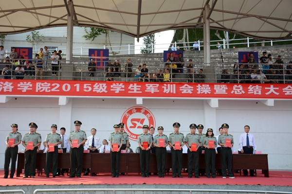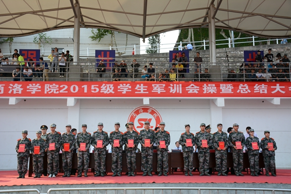 校武裝部部長、軍訓(xùn)團(tuán)政委石啟英宣讀了2015級軍訓(xùn)工作先進(jìn)集體及個人的表彰決定。主席臺上的領(lǐng)導(dǎo)和嘉賓為軍訓(xùn)隊(duì)列先進(jìn)集體、軍訓(xùn)內(nèi)務(wù)先進(jìn)集體、軍訓(xùn)工作優(yōu)秀教官、軍訓(xùn)工作先進(jìn)個人及軍訓(xùn)優(yōu)勝標(biāo)兵代表頒發(fā)了獎牌和證書。