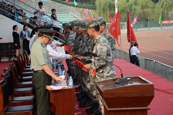 軍訓(xùn)團(tuán)團(tuán)長劉京生總結(jié)了軍訓(xùn)的經(jīng)驗(yàn)和成果。他指出,軍訓(xùn)作為大學(xué)的一堂重要的必修課,在同學(xué)們四年的大學(xué)生活甚至是漫長人生當(dāng)中,是具有濃墨重彩的一筆,是人生旅程中一段美好而難忘的回憶。14天來在綠茵場上的摸爬滾打,造就了同學(xué)們意志如鋼、團(tuán)結(jié)自律的堅(jiān)強(qiáng)斗志,增強(qiáng)了大家國防意識與集體主義觀念,培養(yǎng)了團(tuán)結(jié)互助的作風(fēng),提高了生活自理能力,培養(yǎng)思想和人格上的自立和獨(dú)立,取得了顯著成績。他希望全體新生在今后的學(xué)習(xí)生活中繼續(xù)保持軍人的優(yōu)良作風(fēng)和過硬品質(zhì),做一名有紀(jì)律、有理想、有道德、有擔(dān)當(dāng)?shù)暮细駥W(xué)生,用“博聞強(qiáng)志正道直行”的校訓(xùn)勉勵自己。