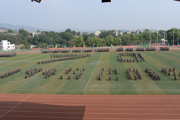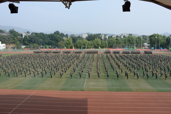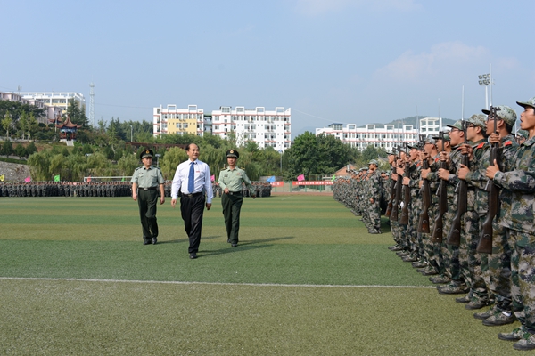 9月21日,我校隆重召開2015級學(xué)生軍訓(xùn)會操暨總結(jié)表彰大會,全體2015級學(xué)生以分列式、刺殺操、花樣隊(duì)列和軍體拳表演等形式展示了他們半個月來的軍訓(xùn)成果。校領(lǐng)導(dǎo)張景書、劉建林、王思懷、彭虎軍、范新會、劉寶盈。解放軍西安政治學(xué)院軍事系主任惠拉林大校,2015級學(xué)生軍訓(xùn)團(tuán)團(tuán)長、解放軍西安政治學(xué)院劉京生大校觀看了會操表演并為受表彰的軍訓(xùn)先進(jìn)集體和個人頒獎。解放軍西安政治學(xué)院有關(guān)領(lǐng)導(dǎo),我校各院(部)、各職能部門主要負(fù)責(zé)人,2015級學(xué)生輔導(dǎo)員參加了大會。大會由副校長范新會主持。
