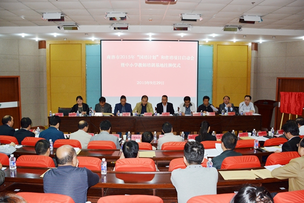 9月29日上午,商洛市2015年“國(guó)培計(jì)劃”和省培項(xiàng)目啟動(dòng)會(huì)暨中小學(xué)幼兒園教師培訓(xùn)基地掛牌儀式在我校舉行。副校長(zhǎng)劉寶盈,商洛市教育局副局長(zhǎng)周春榮,學(xué)校教務(wù)處、繼續(xù)教育學(xué)院負(fù)責(zé)人,全國(guó)繼教網(wǎng)項(xiàng)目主管張文倩等出席了啟動(dòng)會(huì)暨掛牌儀式。商洛市六縣一區(qū)教體局及教研室相關(guān)領(lǐng)導(dǎo),商洛職業(yè)技術(shù)學(xué)院、商洛中學(xué)、商洛市小學(xué)、商洛市幼兒園等教學(xué)單位及全國(guó)繼續(xù)教育網(wǎng)代表參加了會(huì)議。
