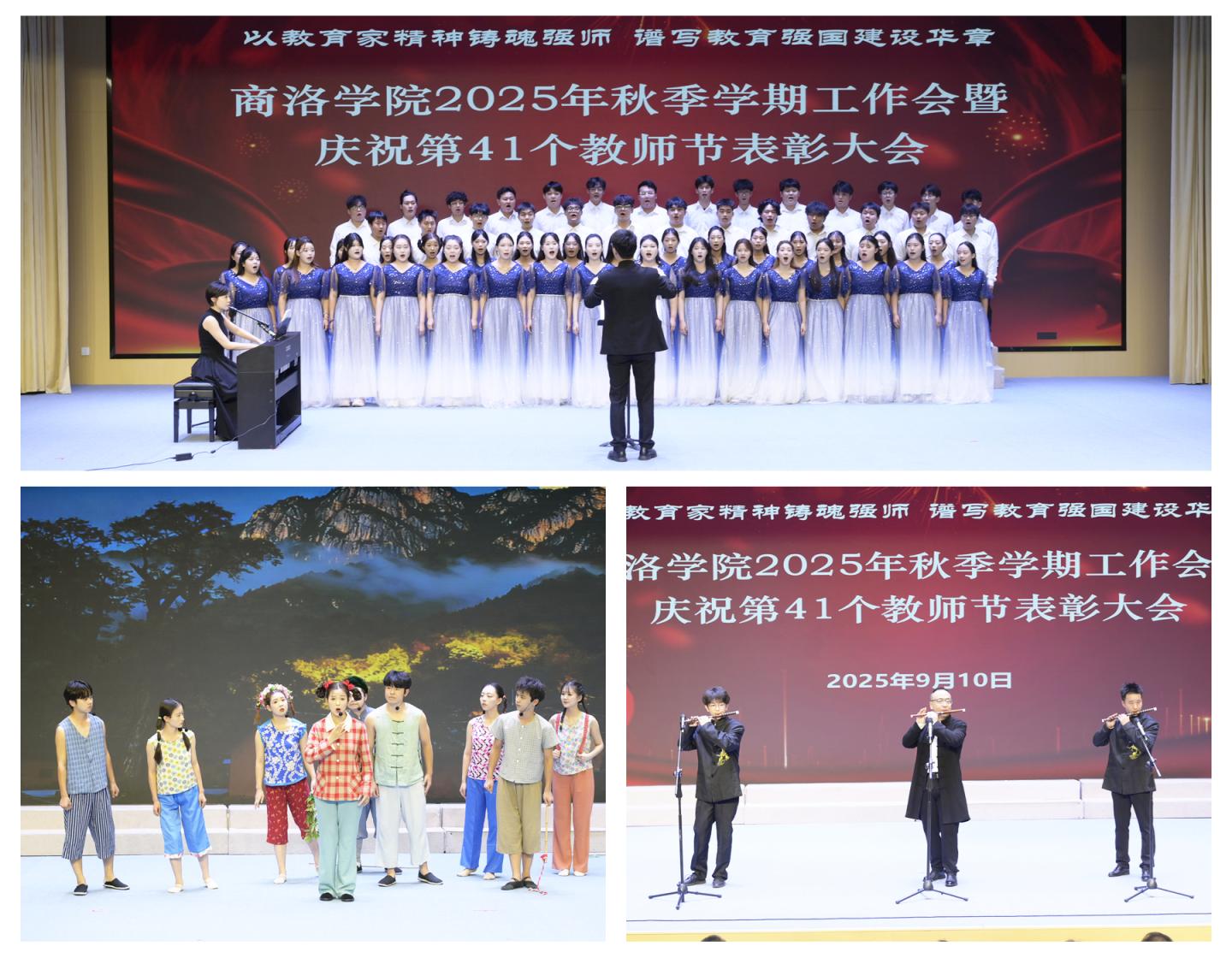 藝術(shù)學(xué)院師生會(huì)前表演了商洛花鼓《月亮光光》選段《追趕星星和月亮》、笛子合奏《揚(yáng)鞭催馬運(yùn)糧忙》、合唱《飛來(lái)的花瓣》等文藝節(jié)目,師生共同歡慶節(jié)日。