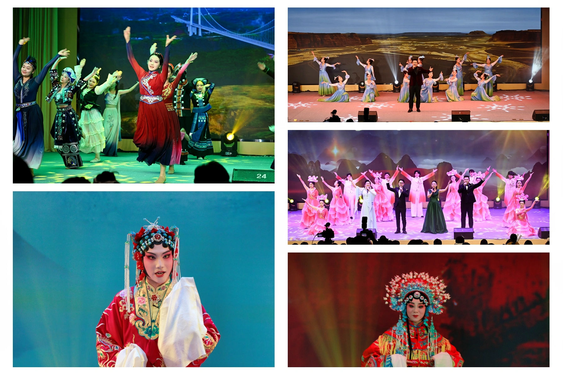 第三篇章“逐光而上·赴新程”激昂奏響奮進(jìn)號(hào)角。歌伴舞《雪白的鴿子》寄托美好期盼;特邀專(zhuān)業(yè)演員與藝術(shù)學(xué)院合作的戲曲《盛世霓裳》華美亮相,國(guó)粹生香;大型民族舞蹈《民族歡歌》場(chǎng)面恢弘,舞出了團(tuán)結(jié)奮進(jìn)的磅礴氣勢(shì);藝術(shù)學(xué)院傾力打造的歌伴舞《春風(fēng)十萬(wàn)里》,以壯麗的畫(huà)面與恢弘的歌聲,描繪出國(guó)家昌盛、萬(wàn)象更新的動(dòng)人畫(huà)卷。