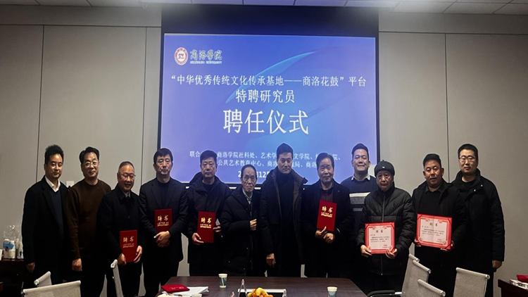 研討會(huì)上,藝術(shù)學(xué)院還向與會(huì)專家頒發(fā)了“中華優(yōu)秀傳統(tǒng)文化傳承基地——商洛花鼓”平臺(tái)特聘研究員聘書。