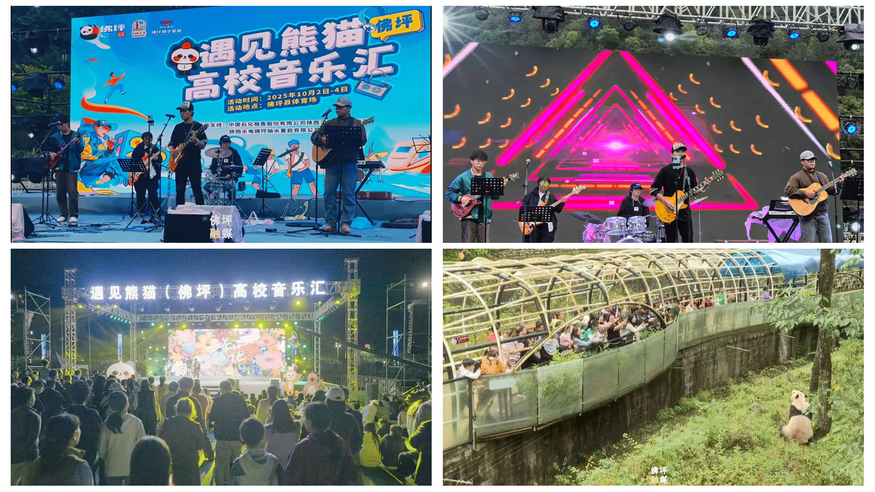 在高校音樂匯環(huán)節(jié),我校大藝團(tuán)“夢(mèng)影樂隊(duì)”傾情演繹了《流行》《私奔》《活著》《茶底世界》等多首歌曲。同學(xué)們憑借扎實(shí)的專業(yè)技能和飽滿的舞臺(tái)表現(xiàn)力,充分展現(xiàn)了高校學(xué)子積極向上的精神風(fēng)貌,也將現(xiàn)代音樂文化與佛坪獨(dú)特的熊貓IP、自然人文景觀有機(jī)融合,為現(xiàn)場觀眾帶來一場視聽盛宴,成為“文旅+音樂”跨界融合的生動(dòng)實(shí)踐。