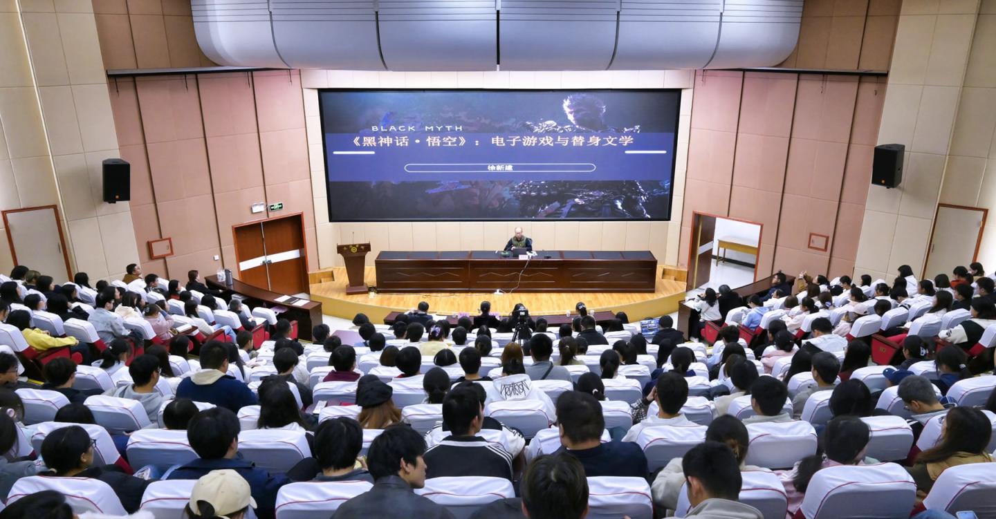 10月25日,商洛學(xué)院“商苑金秋學(xué)術(shù)季”活動(dòng)舉辦第4場(chǎng)高水平學(xué)術(shù)報(bào)告會(huì)。四川大學(xué)教授、博士生導(dǎo)師徐新建應(yīng)邀來(lái)校作《黑神話·悟空:電子游戲與替身文學(xué)》專題報(bào)告。校長(zhǎng)權(quán)雅寧教授與人文學(xué)院400余名師生一同聽(tīng)取報(bào)告。