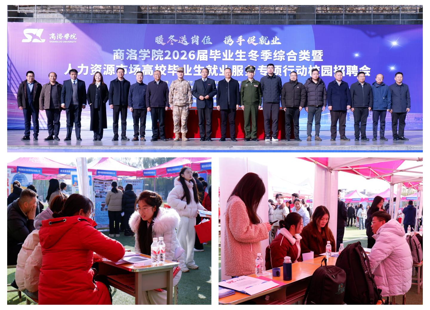 12月5日,我校順利舉辦2026屆畢業(yè)生冬季綜合類暨人力資源市場(chǎng)高校畢業(yè)生就業(yè)服務(wù)專項(xiàng)行動(dòng)校園招聘會(huì)。校黨委副書記王新軍、湖州市人社局副局長(zhǎng)朱新江、商洛市人社局副局長(zhǎng)沈禮軍、商洛市人才中心主任張占宏等出席活動(dòng)并現(xiàn)場(chǎng)指導(dǎo)工作。