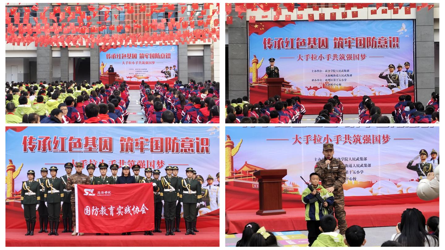 學(xué)校積極拓展國防教育輻射范圍,聯(lián)合商州區(qū)大趙峪街道人民武裝部走進(jìn)商州區(qū)第十五小學(xué),開展“傳承紅色基因 筑牢國防意識”國防教育活動,通過升旗儀式、軍旅故事分享、戰(zhàn)術(shù)演示及軍事訓(xùn)練體驗等活動,在小學(xué)生心中播下“愛國強(qiáng)軍”的種子,體現(xiàn)高校在服務(wù)地方、推動全民國防教育中的積極作用。