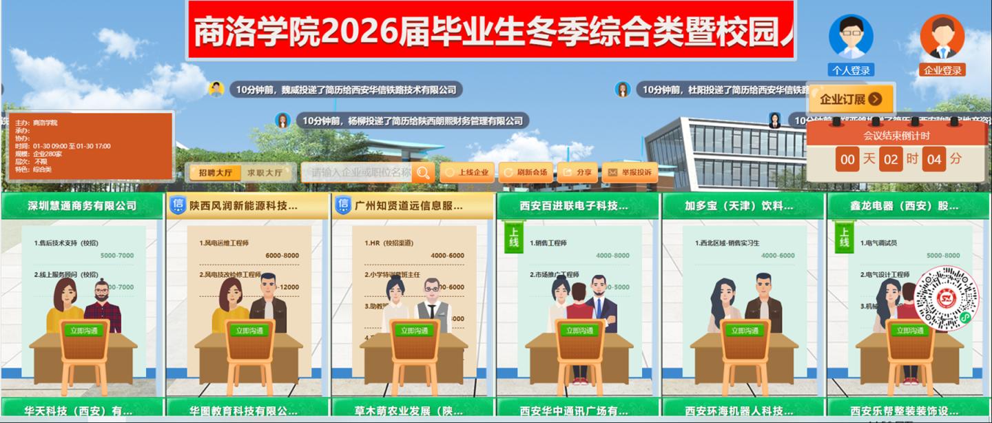 1月30日,我校舉辦2026屆畢業(yè)生畢業(yè)生冬季綜合類暨校園人力資源市場高校畢業(yè)生就業(yè)服務(wù)專項行動專場網(wǎng)絡(luò)視頻招聘會。本次招聘會精準(zhǔn)邀請省內(nèi)外220余家優(yōu)質(zhì)用人單位,崗位覆蓋信息技術(shù)、高端制造、文化教育、醫(yī)療衛(wèi)生等多個關(guān)鍵領(lǐng)域。招聘活動累計提供有效就業(yè)崗位近4000個,為畢業(yè)生搭建了層次高、領(lǐng)域廣、渠道暢的云端求職平臺。