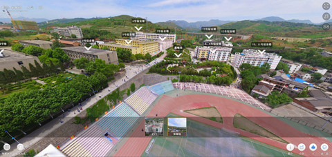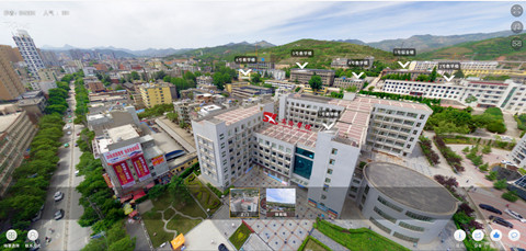 商洛學(xué)院720全景漫游系統(tǒng)分正門和體育場(chǎng)兩個(gè)場(chǎng)景。在正門的場(chǎng)景里,我們可以看到1、2、4、5、6號(hào)教學(xué)樓,1號(hào)宿舍樓,圖書館和體育場(chǎng)。頁(yè)面如下: