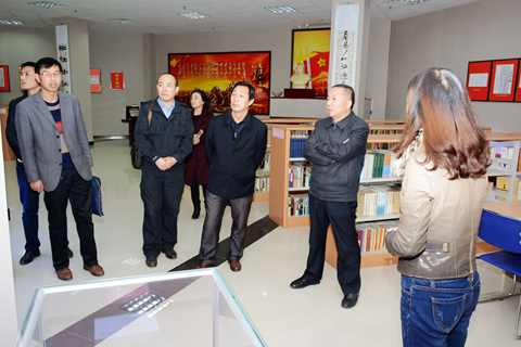 在王思懷等的陪同下,王軍民一行參觀了我校商洛紅色文化資料館、商洛文化暨賈平凹研究中心、藝術展廳等處。
