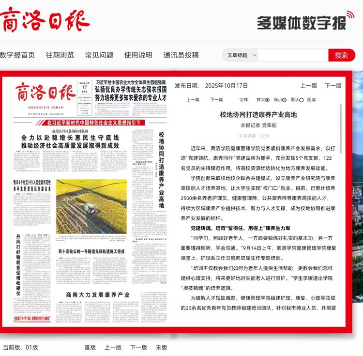 商洛日?qǐng)?bào):校地協(xié)同打造康養(yǎng)產(chǎn)業(yè)高地