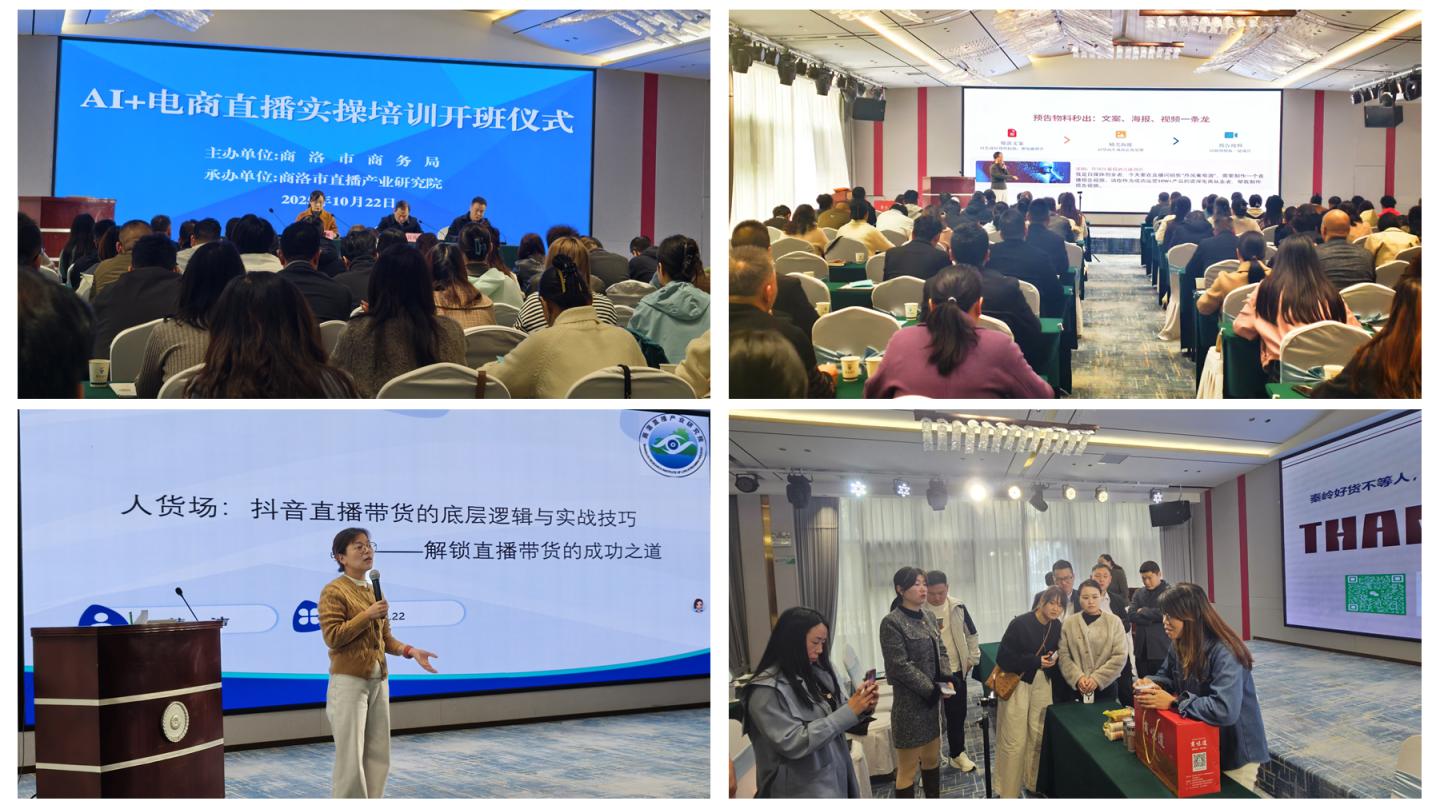 10月22至23日,由商洛市商務(wù)局主辦、我校商洛直播產(chǎn)業(yè)研究院承辦的“AI+電商直播電商實操培訓(xùn)班”在國際會議中心成功舉行。本次培訓(xùn)旨在進一步提升我市電商從業(yè)人員直播運營能力,培養(yǎng)理論扎實、實操突出的直播電商專業(yè)人才。各縣區(qū)電商服務(wù)中心業(yè)務(wù)骨干、新媒體企業(yè)帶頭人、涉農(nóng)電商從業(yè)者等120余人參加了此次培訓(xùn)。
